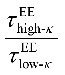 (t) represents the end-to-end distance vector of the peptides (Fig. S5A–C). A bi-exponential function was fitted to derive the average time-constants for the end-to-end distance dynamics of the polymers. The average timescale of the correlated end-to-end distance fluctuation in the condensate phase for the high-κ and low-κ polymers is shown in Fig. 7 (panels A–C) as
