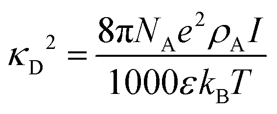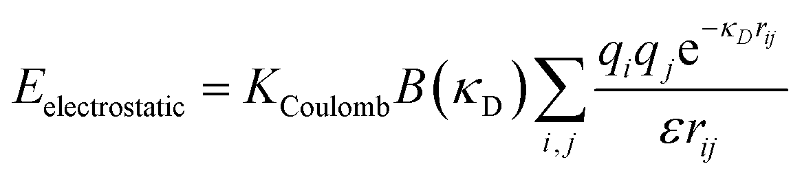 An embedded implicit solvent model and the salt effect were used for screening the electrostatic interactions between the charged beads using the Debye–Hückel potential,63 which is expressed as: