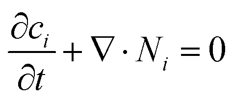 Continuous transport refers to ion migration within a continuous effective medium (Fig. 3(a)), where ion motion obeys the fundamental continuity equation:124| |  | (1) |