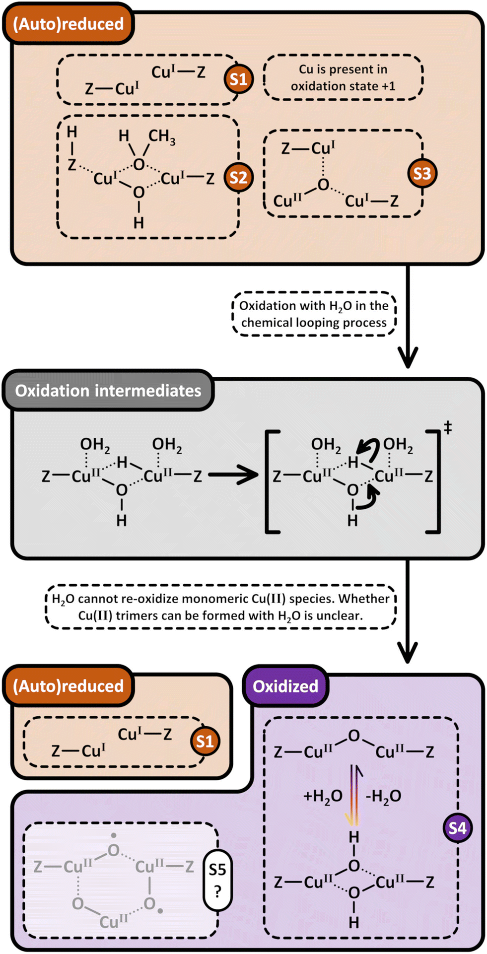 | 2Cu+ + H2O → [Cu2(µ-O)]2+ + H2 | (7.1) |