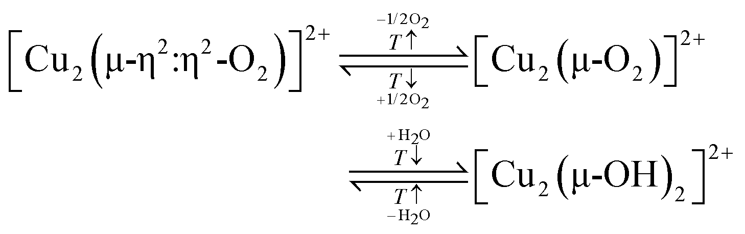 000 cm−1, thereby showing that the [Cu3(µ-O)3]2+ species can be reconstituted from a reduced state (Scheme 11). A slight bathochromic shift of the band at 39