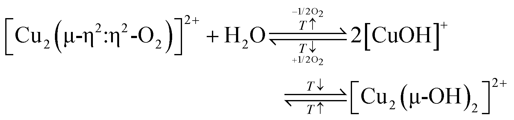 | [Cu2(µ-OH2)]2+ + H2O → [Cu2(µ-OH)2]2+ + H2 →[Cu2(µ-O)]2+ + H2O | (7.3) |