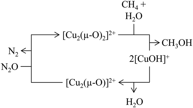 | [Cu2(µ-OCH3)]+ + H+ + 2H2O → [Cu2(µ-OH)2]2+ + CH3OH + H2 → [Cu2(µ-O)]2+ + H2O | (7.2) |
