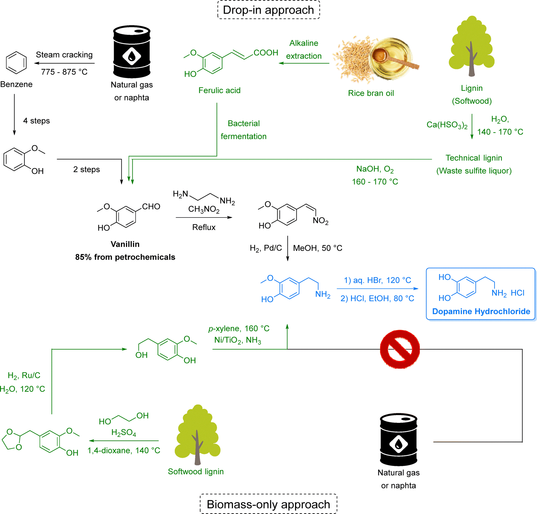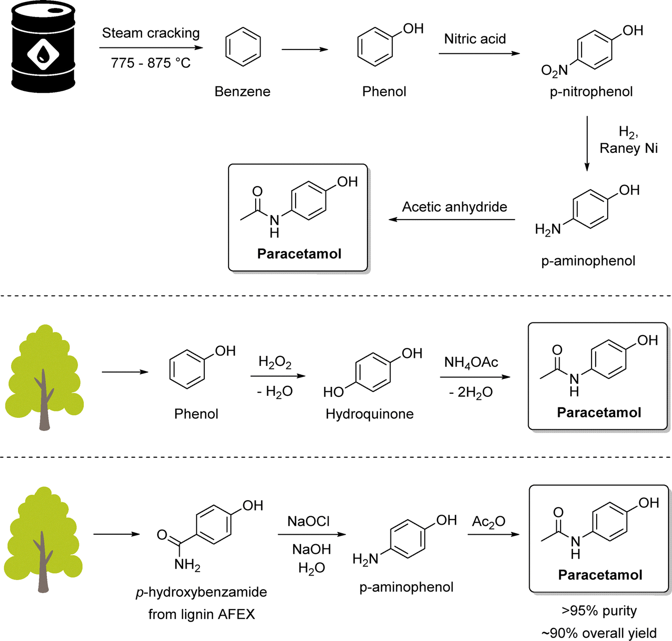 Equally transformative is the transition from fossil-based to renewable feedstocks. Petroleum and natural gas have historically provided the backbone of pharmaceutical and chemical synthesis,31 while abundant, renewable alternatives remain largely untapped. Biomass-derived starting materials (e.g., from lignocellulosic pathways), open the door to a circular chemical economy that repurposes non-edible waste streams into valuable intermediates. Hence, in Section 3, we discuss how this shift can enable defossilization while creating more resilient and diversified supply chains.