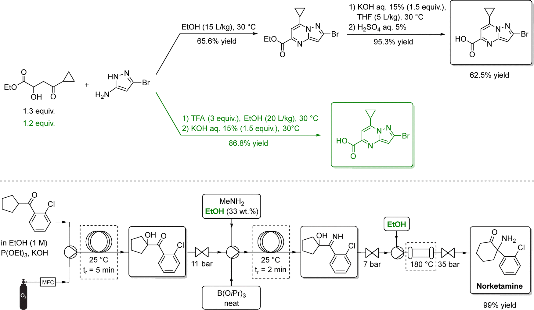 As synthesis and technology continue to converge, the boundary between chemistry and chemical/process engineering is becoming increasingly blurred. In this context, the field of computational modeling (from first-principles quantum chemistry to large-scale numeric and mechanistic process simulations) has the potential to completely reshape what is considered the optimal synthetic route. A synthesis once deemed superior based on laboratory findings may be eclipsed by an alternative set of conditions when computational models explore operating conditions beyond the constraints of classical physical experimentation. Such in silico experimentation can simulate vast parameter spaces and unveil global optima that are otherwise inaccessible. Advanced retrosynthesis software (e.g., SYNTHIATM, ICSYNTH, IBM RXN) can also facilitate the identification of optimal synthetic routes early in development, thereby also embracing less obvious disconnections. Meanwhile, real-time, self-optimizing experimental platforms, powered by sequential design of experiments (DoE) and machine learning algorithms, can dynamically adjust process parameters to maintain product quality and maximize efficiency. The full integration of AI, ML, and computational modeling into chemical process development is vast, and will be addressed in greater detail in a separate review.
