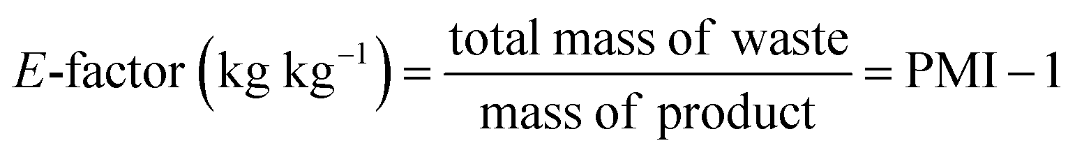Beyond aggregate industry emissions, it is crucial to quantify the environmental impact of individual chemical processes. This can be achieved by using green metrics such as Process Mass Intensity (PMI) and the Environmental Factor (E-factor), which have become invaluable benchmarks due to their simplicity and broad applicability. Defined by straightforward mass-based calculations, these metrics are closely interrelated: