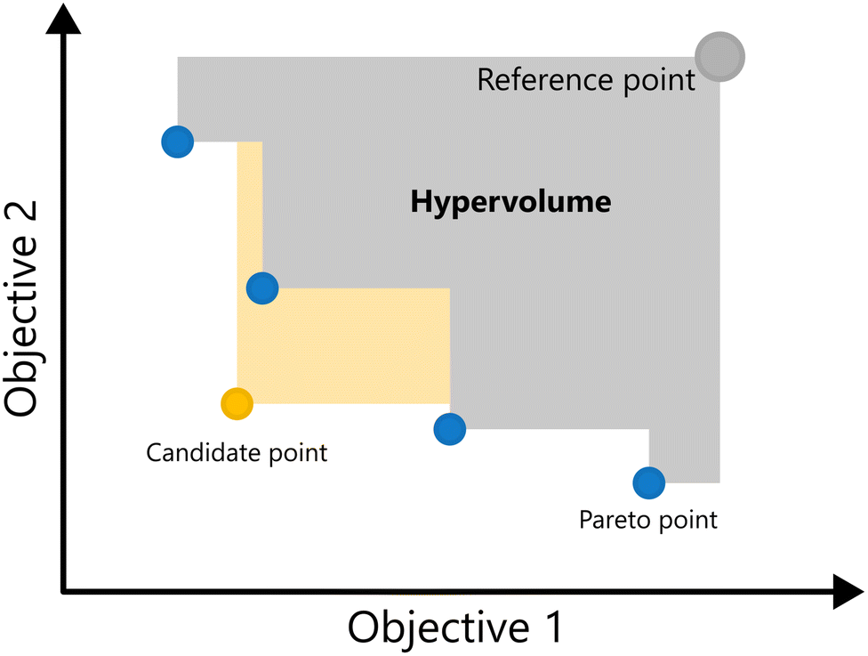 For the first four rounds, yield and selectivity were modelled independently, each subjected to its own acquisition function, and the resulting acquisition scores were then manually Pareto-ranked to select the next batch of experiments, rather than using a formal multi-objective acquisition function. Only from the fifth round onward was the UPBO framework adopted. While the authors reported that this approach led to more rapid convergence to high-performing regions of the search space, the comparison is weakened by the less systematic strategy employed during the initial rounds, which lacked the rigor of standard multi-objective optimization. In the end, conditions providing both high yield and high selectivity (>90