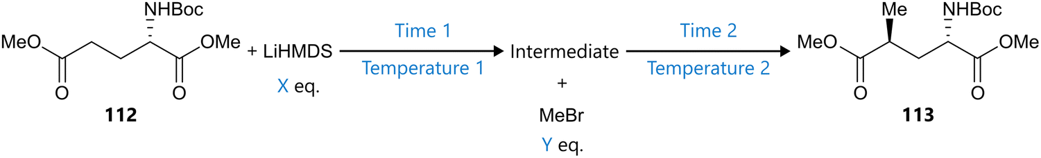 | Scheme 16 Cryogenic telescoped synthesis of a pharmaceutical intermediate as reported by Zhu et al.133 Parameters defining the reaction space are highlighted in blue. | ||