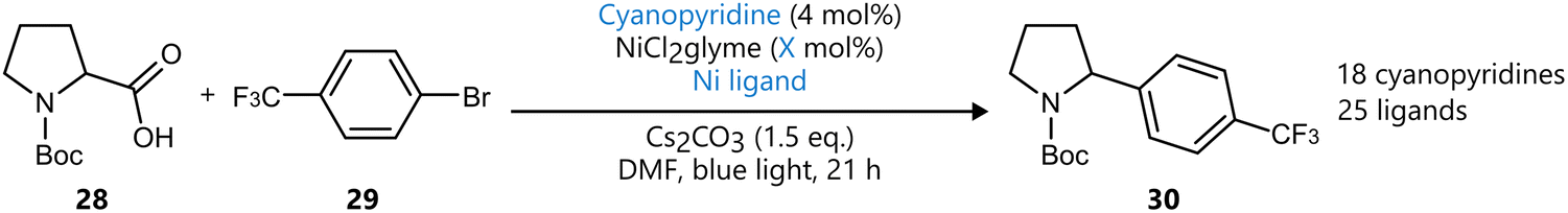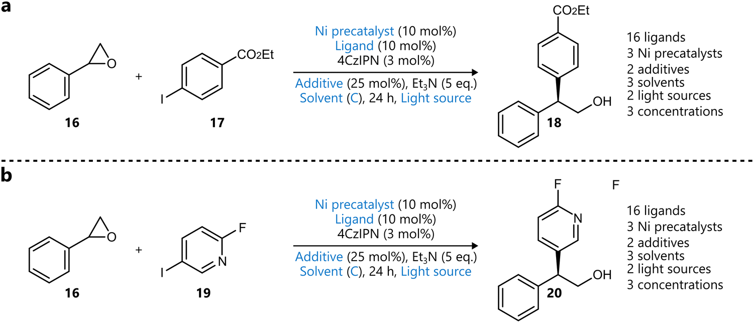 Although the underlying mechanism of these reactions could be viewed as comprising two steps, these processes are covered here, under single-step optimization, as it is experimentally infeasible to isolate the intermediate or to optimize the mechanistic stages independently.