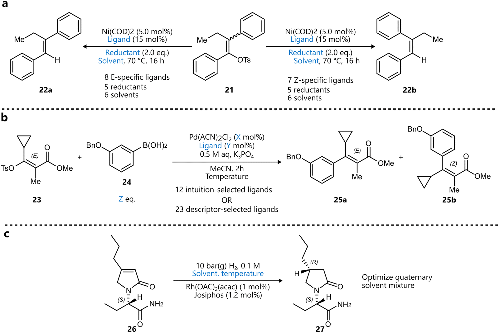 A second area of interest concerning algorithms is transfer learning. Most optimization campaigns still begin ‘cold,’ without leveraging any prior data. Although the multi-task and neural-process-based approaches covered here hold great promise, a method that generalizes across broad reagent and substrate spaces has yet to emerge.