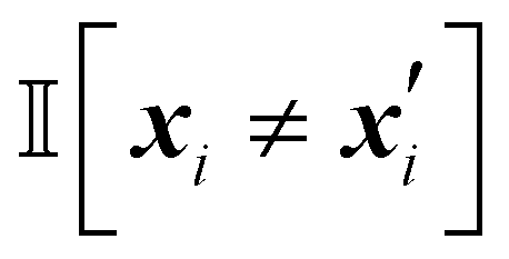 is the indicator function, which returns 1 if the inputs differ in dimension i, and 0 otherwise. It penalizes dissimilarity discretely and avoids interpolating over intermediate values.