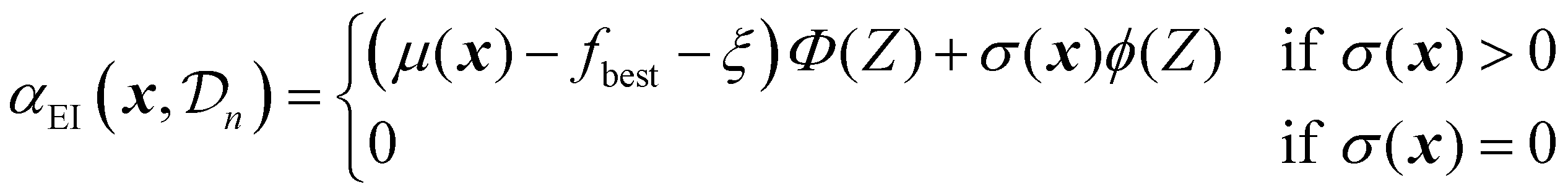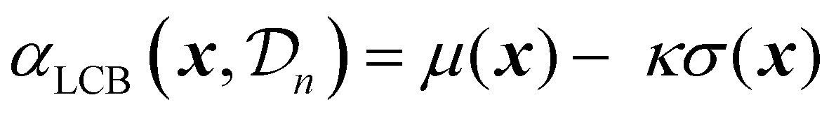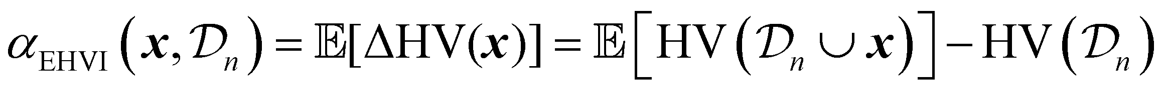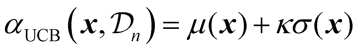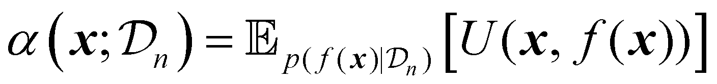 to calculate an overall utility of evaluating the objective at point x. Essentially, it takes the expected value of a utility function, U(x,f(x)), over all possible outcomes, considering both the prediction and the corresponding uncertainty around this prediction. It should be noted that in eqn (21), f(x) denotes the posterior mean prediction at x, not the surrogate model's latent function itself. By maximizing the acquisition function, the next experiment can be determined.