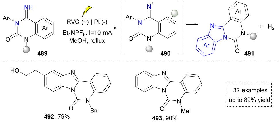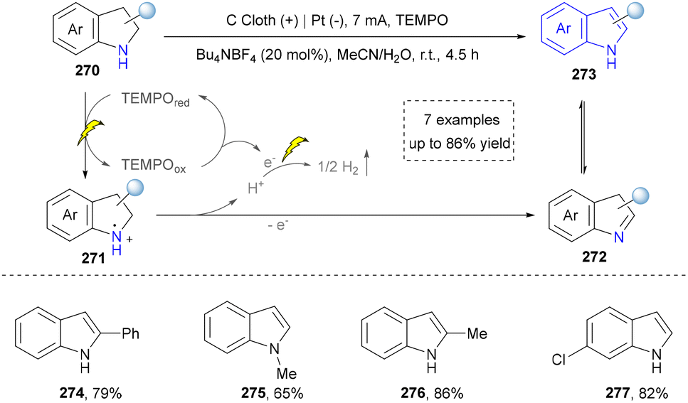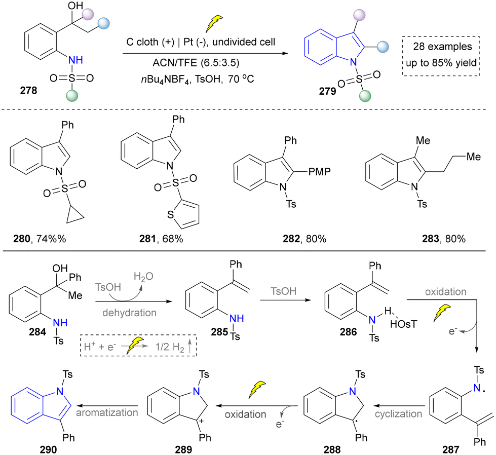 | | Scheme 25 Electrochemical synthesis of the fused indole derivatives. | |