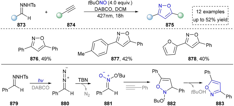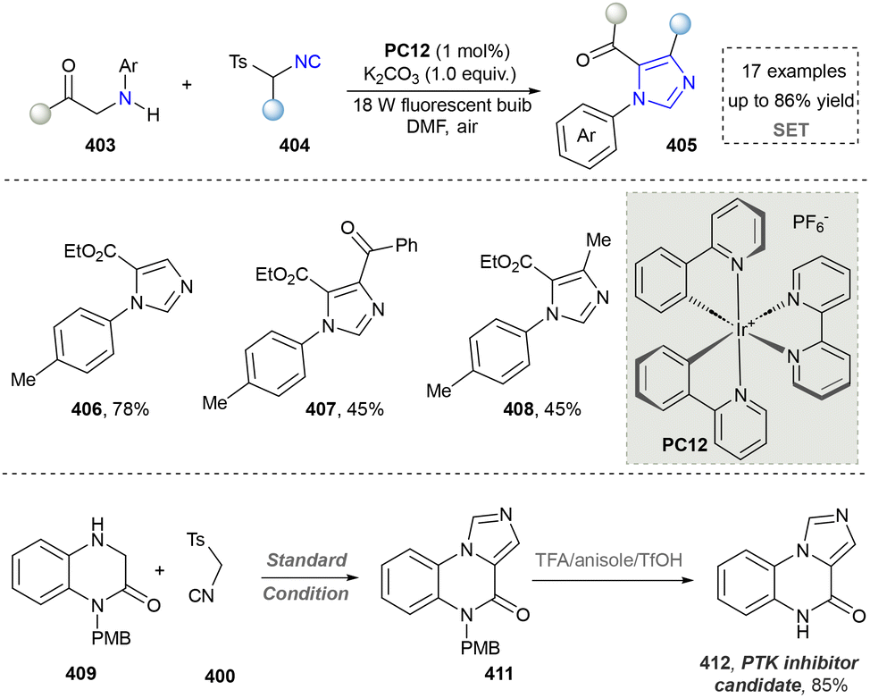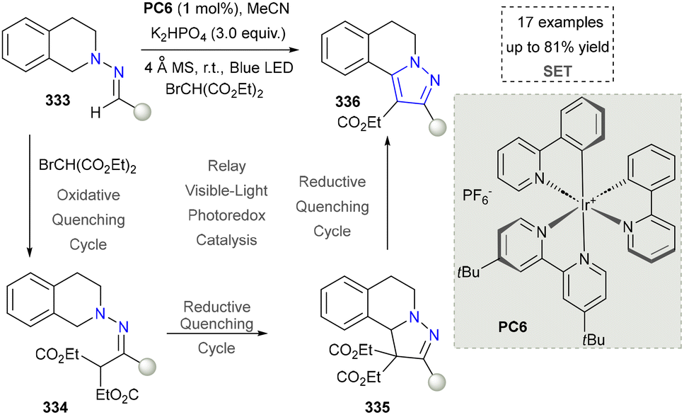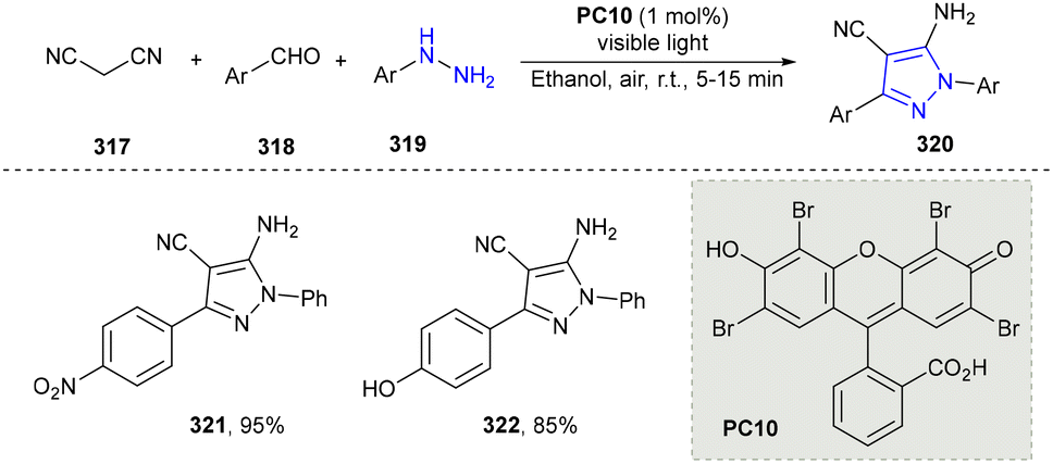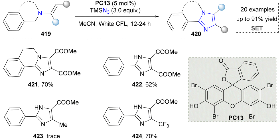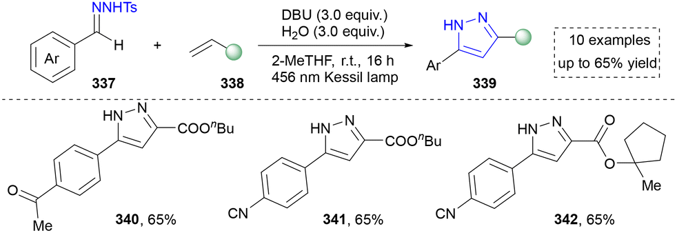 | | Scheme 7 Visible-light-induced [3+2] cycloaddition for the synthesis of pyrroles. | |