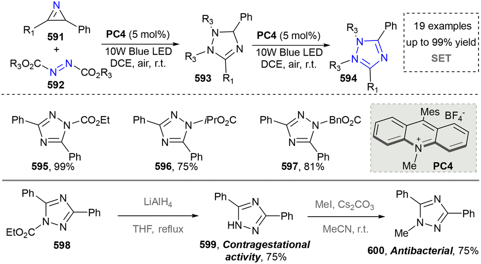 | | Scheme 5 The synthesis of pyrroles via visible light activation of aryl and vinyl azides. | |
