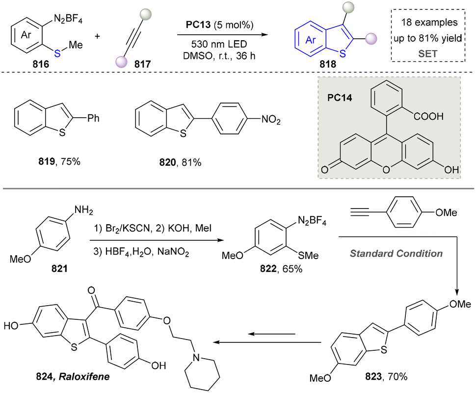 Compared to conventional methods like Fischer indole synthesis or transition-metal-catalyzed cross-coupling, photochemical synthesis revolutionizes the substrate scope for indole compounds by eliminating the need for pre-functionalization, allowing the direct modification and construction of the indole scaffold from simple, non-activated substrates under mild and neutral conditions and enabling single-step access to traditionally challenging, sterically congested or polycyclic indole derivatives, thereby providing a vastly expanded molecular scaffold library for drug discovery. Overall, the intramolecular cyclization to furnish the indoles has been well established with different photocatalytic methods. However, it is evident that the synthesis of these starting materials often involves multiple steps, which not only complicates the process but also restricts the structural diversity of the resulting indoles. It is important to highlight that intermolecular synthesis, utilizing readily available substances, holds greater promise and deserves more attention for further exploration.