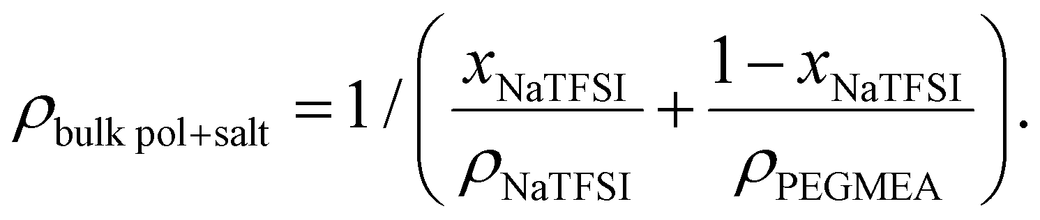 1 typically yield a conductivity maxima, according to literature.36 This means that increasing the salt concentration in the reaction mixture in the present study could increase the SPE conductivity. However, increasing the salt concentration can reduce the coating thickness and induce inhomogeneities, as previously observed in a lithium-based system.28 Consequently, higher salt concentrations were not explored using the single-step process employed in the present study. Nevertheless, higher salt concentrations may be attainable by using a higher donor number (DN) solvent, increasing the monomer concentration alongside the salt concentration in the reaction mixture, or through post-polymerisation swelling of the grafted SPE.