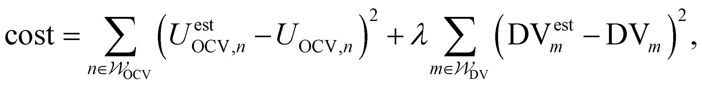 To determine the DMs, both the residual between the measured and reconstructed OCV as well as between the measured and reconstructed DV are minimized. The DV is defined as