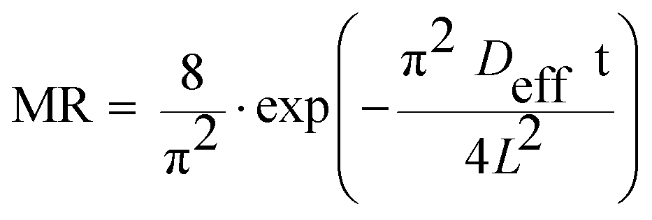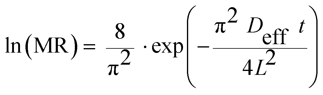 The value of Deff was estimated from the slope (k) of the linear regression between ln(MR) and time, using the following eqn (6):