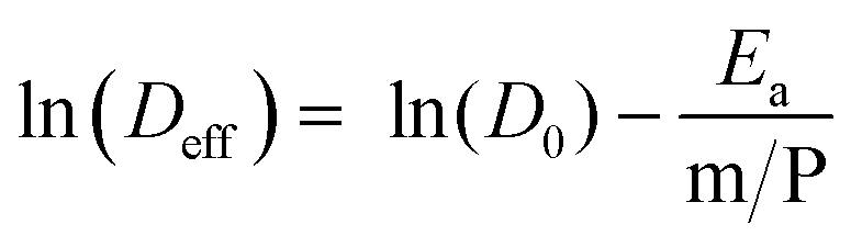 From the linear regression of ln(Deff) as a function of 1/(m/P), the following parameters were estimated: