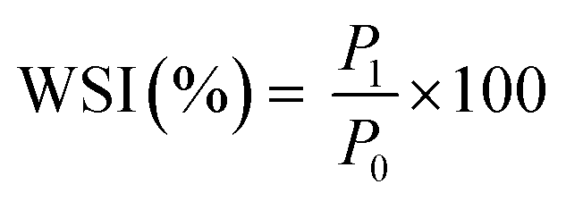 For SWC assessment, the sample (0.5 g) was combined with 10 mL of water in a graduated cylinder. The mixture was vortexed at full speed for 3 min and allowed to stand for 24 h. The swelling capacity was reported as the increase in volume per gram of sample (v/w).