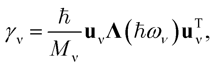 Projection of Λ onto a mass-weighted, normal mode displacement vector of mode ν, ũν, (from the same simulation cell) yields the mode-resolved linewidth γν, corresponding to the full width at half maximum (FWHM), and corresponding lifetime due to electron–hole pair dissipation, τν: