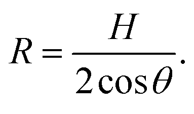 The radius of curvature R is related to the effective channel height H and the static contact angle θ (measured through the liquid) via simple geometry of a circular arc,