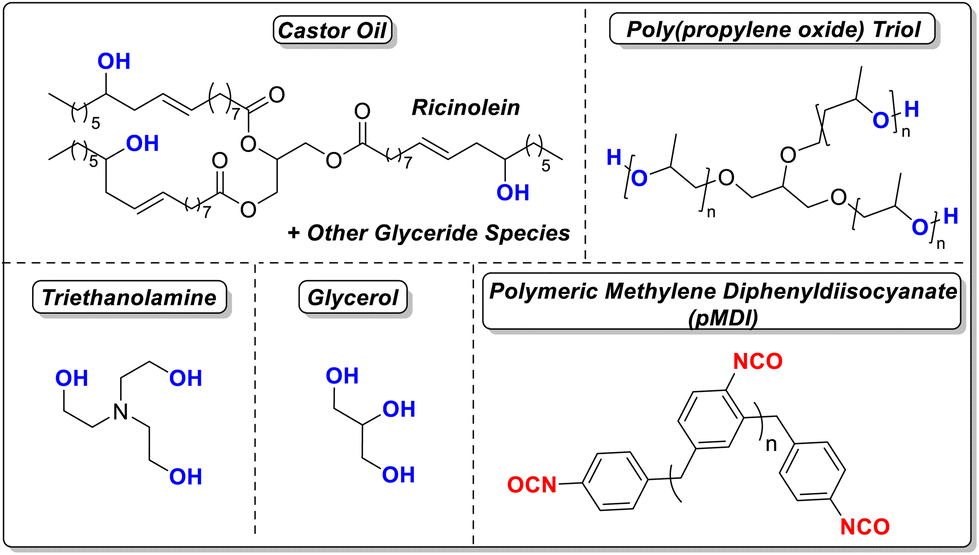Castor oil has a reported averaged hydroxyl functionality of 2.7
