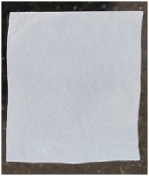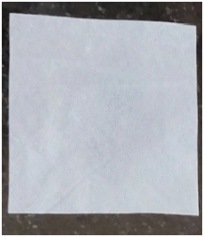 The tensile strength of the films was measured using a Universal Testing Machine (UTM) operated at a maximum load of 2.5 kN and a speed of 12 mm min−1, in accordance with the ASTM D882-02 standard. The thickness of the films was measured using a thickness meter provided by S C Dey and Co., India. The thickness was measured at eight different places of the films and the average value was taken as the final thickness of the films. The stress (kg) versus elongation (%) graph was obtained, and the tensile strength (MPa), elongation at break (%), and Young's modulus (MPa) were calculated. Three specimens of each sample were tested, and the average values were recorded. All the specimens were stored at a temperature of 27 ± 2 °C under 52% humidity for 24 h prior to testing.