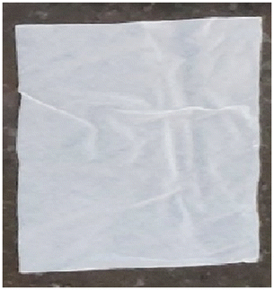 Burst tests were performed using a burst tester procured from Advanced Equipments, India, in accordance with ASTM F1140-00. A film of size 15 × 20 cm2 was folded, and the exposed edges were heat-sealed ensuring proper sealing to form a packet. A 1 mm hole was then cut into the middle of the formed packet, which was attached to the air pipe of the burst tester, and subjected to burst testing. Three specimens of each sample were tested, and the average value was recorded as the burst capacity, expressed in psi. All of the film packets were stored at a temperature of 27 ± 2 °C under 52% humidity before testing.