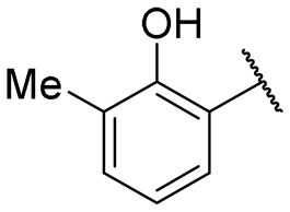 Regarding the second protease target HAT, this series of compounds is generally less potent. Inhibitory activity was observed with 3-methyl, 4-methyl, 5-methyl, 4-isopropyl salicylamide derivatives, as well as with the 1-naphthol compound (compounds 4, 5, 6, 10 and 14, respectively). All other modifications resulted in a loss of inhibition. The 5-methyl derivative 6 exhibited the highest potency of all evaluated compounds (IC50 of 2.4 μM), followed by the 4-isopropyl and the 4-methyl derivatives (IC50 of 11.6 μM and 18.9 μM for compounds 10 and 5, respectively). Thus, from this study, four compounds displayed dual activity against TMPRSS2 and HAT, namely compounds 5, 6, 10 and 14, with compound 10 as the most potent one.