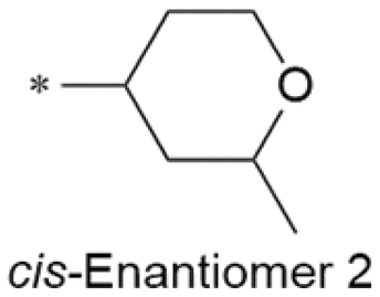 The initial SAR was focused on the tetrahydropyran ring. Substitutions of the tetrahydropyran (4 and 5) and pyran isomers (6 and 7) were well tolerated in terms of potency with modest improvement of solubility (Table 2). Ring contraction to tetrahydrofurans (8 and 9) and oxetane 10 afforded similar potency and good solubility. A heteroatom switch to nitrogen provided compounds 11–13 with significant improvement of solubility with a loss of potency. Exploring ring extension or replacement with alkyl chains was not fruitful (compounds 14–20).