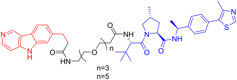 Since the first demonstration of specific knockdown of endogenous tau protein using PROTAC by Li, Yan-Mei et al. in 2016,66 extensive studies have reported tau-targeting PROTACs incorporating various E3 ligase ligands, including von Hippel–Lindau (VHL) and cereblon (CRBN).