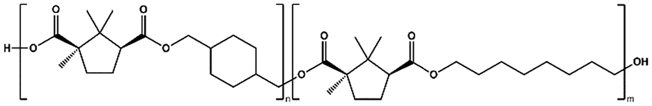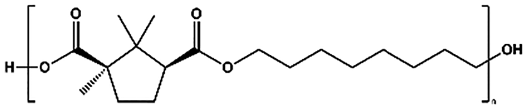 The synthesis of poly(cyclohexanedimethylene camphorate) (PCHC) required two additional extended procedures, which were adjusted from the previous procedure. In one case, a nitrogen atmosphere was applied for 24 h at 180 °C, followed by 200–230 °C for 7 h in dynamic vacuum until 2 mmHg was reached. In another case, when a similar procedure was used, the catalyst was changed to TTIP.