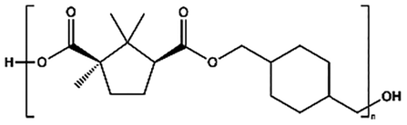 , leading to a high dispersity of 3.4, suggesting a broader molecular weight distribution, likely caused by side reactions or non-uniform mixing as the viscosity increased during polymerization. In contrast, the polyester obtained from the polymerization of camphoric acid with the cyclic diol comonomer CHDM (PCHC) had a considerably lower