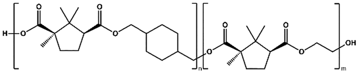 value of 4500 g mol−1. The difficulty in removing excess CHDM during condensation, compared to EG or OD, might be a contributing factor. In addition to that, it could also indicate that the bulky structure of cyclic diols (i.e., CHDM) decreases the reaction rate.35 Compared with the work of Nsengiyumva and Miller, who also reported that PEC and related camphoric acid–based polyesters from C2–C6 diols with