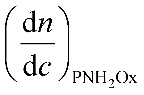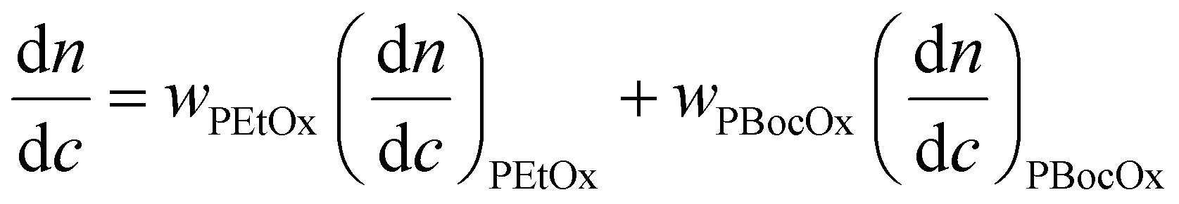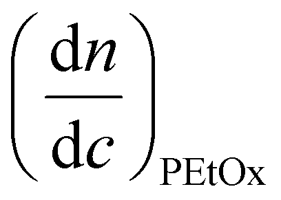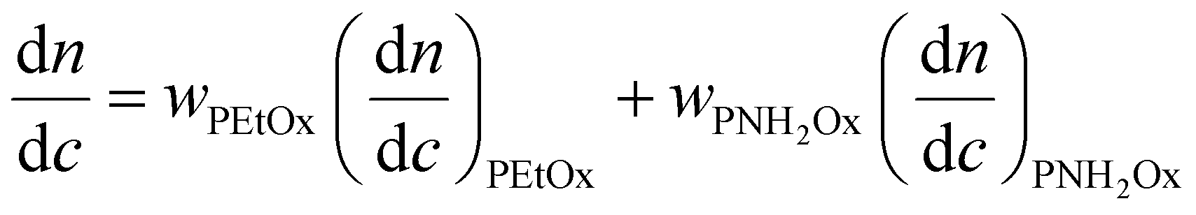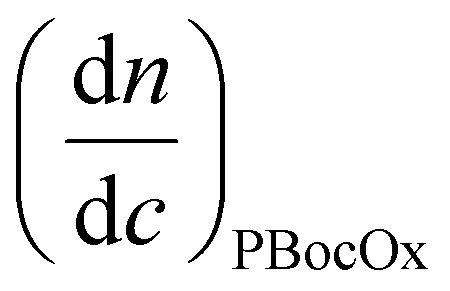 is the refractive index increment of the homopolymer of 2-[N-Boc-5-aminopentyl]-2-oxazoline (measured independently) and is equal to 0.068 mL g−1. The refractive index increment (dn/dc) of the copolymer after the deprotection was calculated from the equation