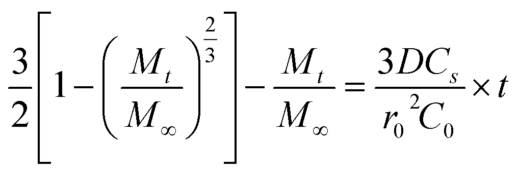 To analyze drug release from different matrices, the Baker-Lonsdale model for spherical matrices was applied to quantify DOX release from nanocapsules under various conditions,54–56 as described below: