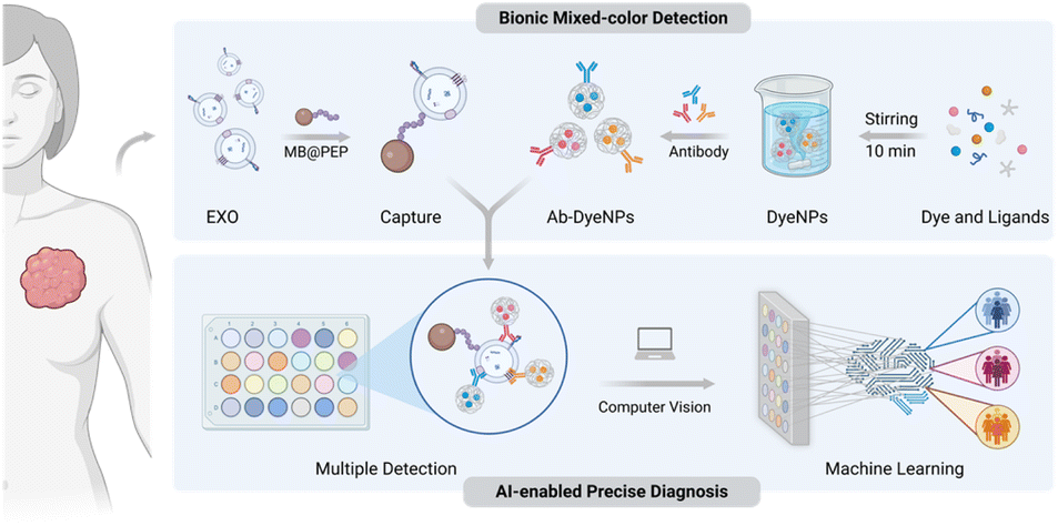 | | Scheme 1 Principles of AI-enabled colorimetric analysis of EXO for precise diagnosis of breast cancer. | |