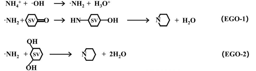 Based on the experimental research and DFT calculations mentioned above, schematic equations to elucidate the mechanism for NH4+ ion conversion into graphitic nitrogen under our electrochemical conditions are provided as follows.