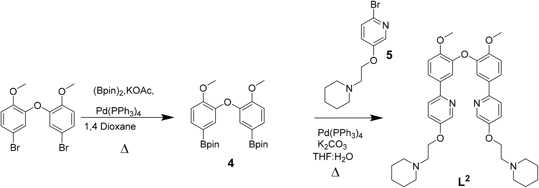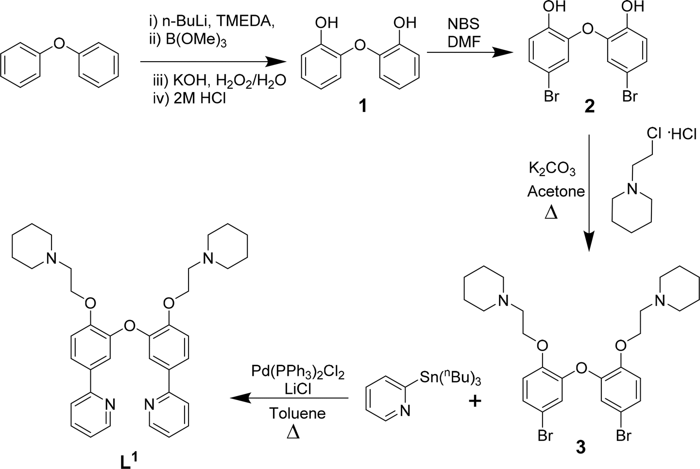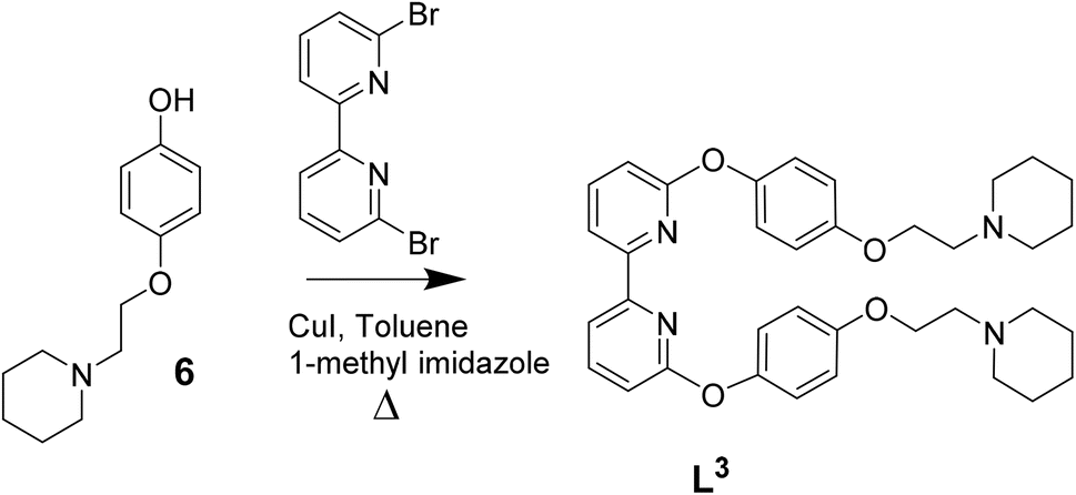 Ligands L1–L3 were synthesised as shown in Schemes 1–3. The final ligands and all the intermediates were characterised by 1H and 13C NMR spectroscopy, and mass spectrometry (see SI for details). The purity of the final compounds, was confirmed by LC-MS.