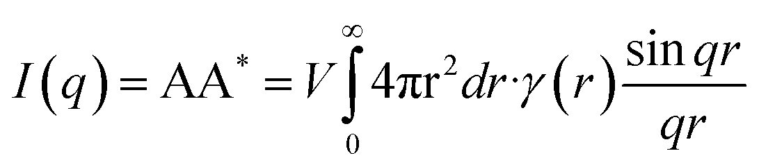 where ρ(r) represents electron density at a distance r, q represents the magnitude of the scattering vector. Furthermore, the scattering intensity equation can be described by the following formula:| |