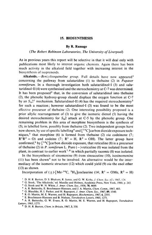 R. Ramage, Annu. Rep. Prog. Chem., Sect. B: Org. Chem., 1967, 64, 511 DOI: 10.1039/OC9676400511