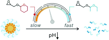 Smart drug delivery in a site-specific and time-controlled manner is critical for reducing the side effects of the drug while maximizing the therapeutic efficacy. Herein, we describe an efficient approach to control the degradation kinetics of polyether micelles under acidic conditions using random copolymers of functional epoxide monomers bearing different acetal groups. The amphiphilic block copolymers, poly(ethylene glycol)-block-poly(ethoxyethyl glycidyl ether-co-tetrahydropyranyl glycidyl ether)s (PEG-b-P(EEGE-co-TGE))s, are synthesized by the anionic ring-opening polymerisation of the pH-responsive novel epoxide monomers ethoxyethyl glycidyl ether (EEGE) and tetrahydropyranyl glycidyl ether (TGE) in varying ratios. The random block copolymers are carefully characterized by 1H NMR, GPC, and DSC and the copolymerisation kinetics are evaluated using in situ1H NMR analysis. The critical micelle concentrations, loading efficiencies, and size distributions of the copolymer micelles show a saturation point over a critical TGE ratio. Interestingly, the degradation and subsequent release kinetics of the micelles under acidic conditions are remarkably different when the composition of the acetal groups is varied. The superior biocompatibility coupled with the highly tailorable release kinetics is anticipated to lead to a versatile platform for smart drug delivery systems.