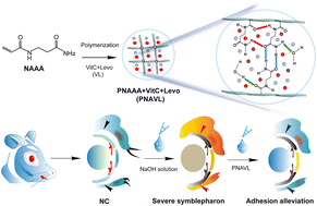 Symblepharon is an adverse ocular disease resulting in ocular discomfort and impaired vision, severely dragging down a patient's quality of life. Due to the specificity of the ocular surface, the retention time of drugs on it is short, leading to limited therapeutic effects for ocular diseases. Therefore, it is imperative to design a novel drug delivery system, which can not only prolong the retention time of a drug but also play an anti-fibrosis role in symblepharon. Herein, an antifouling supramolecular polymer ophthalmic ointment consisting of poly(N-acryloyl alaninamide) (PNAAA), vitamin C (VitC) and levofloxacin (Levo) was developed (termed PNAVL ophthalmic ointment), which acted as a mucoadhesive and long-acting ocular delivery system. This antifouling PNAVL ophthalmic ointment improved the retention time of VitC and Levo, and simultaneously provided anti-inflammation and anti-fibrosis effects for mitigating symblepharon after ocular alkali burn injury.