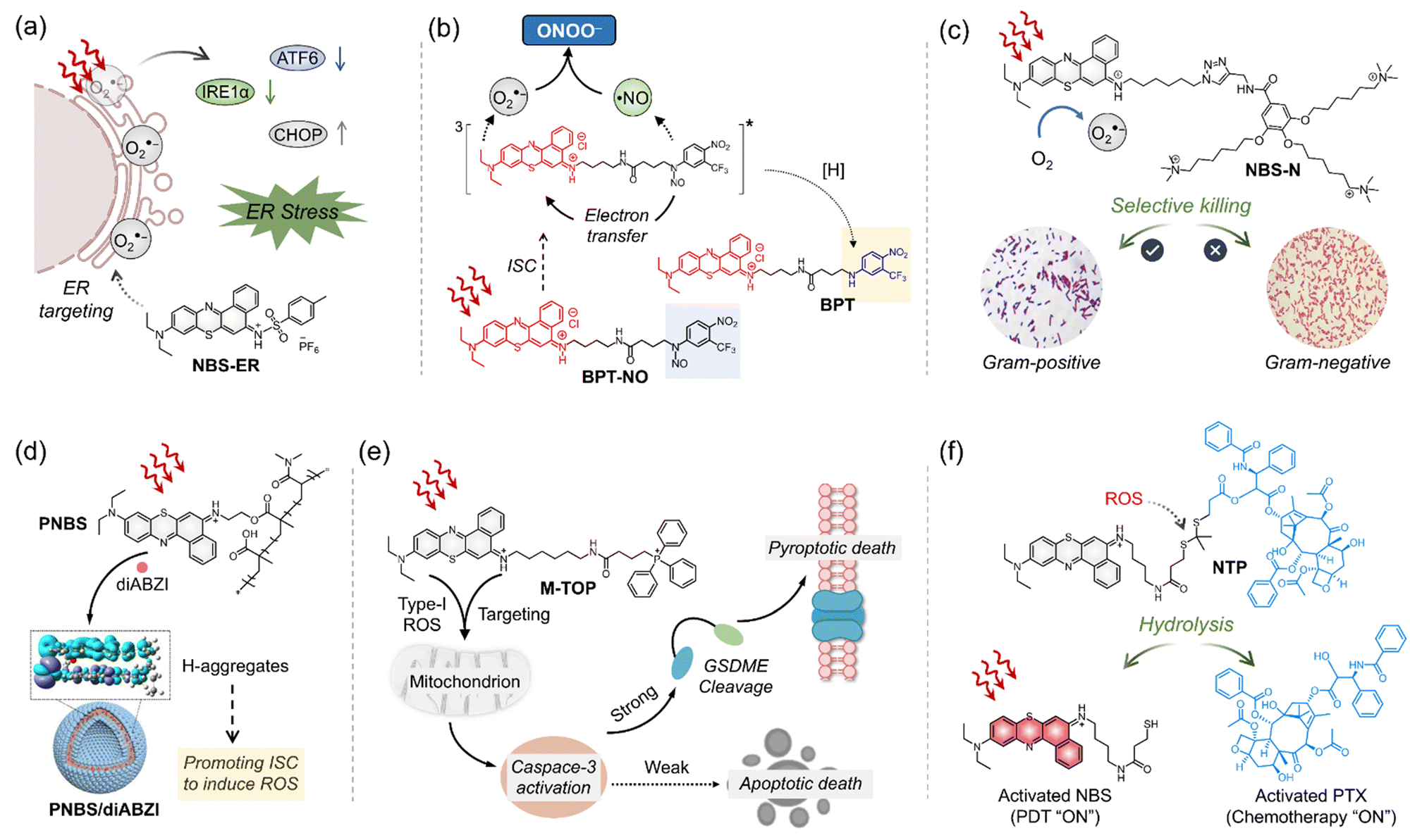 In contrast, type I PDT has gained considerable attention due to its reduced O2 dependency and a unique “partial oxygen-recyclable” anti-hypoxia mechanism (elaborated in Section 3.2.1).20 Since our seminal discovery in 2018 of thio-Nile blue (ENBS) as a novel generator of superoxide anions (O2˙−),21 interest in type I PDT has surged, leading to substantial research advancements globally. However, the diversity in detection methods and ROS identification mechanisms has introduced challenges, often complicating the accurate understanding and optimization of type I PDT.