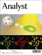 This paper reports the colorimetric and resonance scattering (RS)-based biosensor for the ultrasensitive detection of As(III) in aqueous solution via aggregating gold nanoparticles (AuNPs) by the special interactions between arsenic-binding aptamer, target and cationic surfactant. Aptamers and the cationic surfactant could assemble to form a supramolecule, which prevented AuNPs from aggregating due to the exhaustion of cationic surfactant. The introduction of As(III) specifically interacted with the arsenic-binding aptamer to form the aptamer–As(III) complex, so that the following cationic surfactant could aggregate AuNPs and cause the remarkable change in color and RS intensity. The results of circular dichroism (CD) and scanning probe microscope (SPM) testified to the formation of the supramolecule and aptamer–As(III) complex, and the observation of transmission electron microscope (TEM) further confirmed that the aggregation of AuNPs could be controlled by the interactions among the aptamer, As(III) and cationic surfactant. The variations of absorbance and RS intensity were exponentially related to the concentration of As(III) in the range from 1 to 1500 ppb, with the detection limit of 40 ppb for the naked eye, 0.6 ppb for colorimetric assay and 0.77 ppb for RS assay. Additionally, the speed of the present biosensor was rapid, and it also exhibited high selectivity over other metal ions with an excellent recovery for detection in real water samples, suggesting that the proposed biosensor will play an important role in environmental detection.
