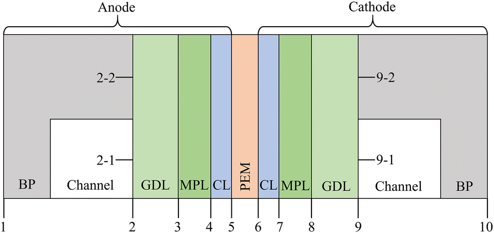 | MD model | Takes into account detailed molecular structures in simulations | Limited to very-short-period nano-scale phenomena with accuracy highly dependent on the potential energy functions | High | Proton, heat, oxygen, or water transfers at nano-scale within CL and membrane |
